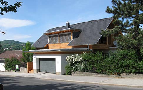 Neubau klima:aktiv haus. Planung und Überwachung der Heizungs-, Klima-, Lüftungs- und Sanitäranlagen sowie der Elektroinstallationen. Einbau von Wärmepumpen mit 8 Tiefensonden und einer kontrollierten Wohnraumlüftung. Auslegung einer Photovoltaikanlage.
